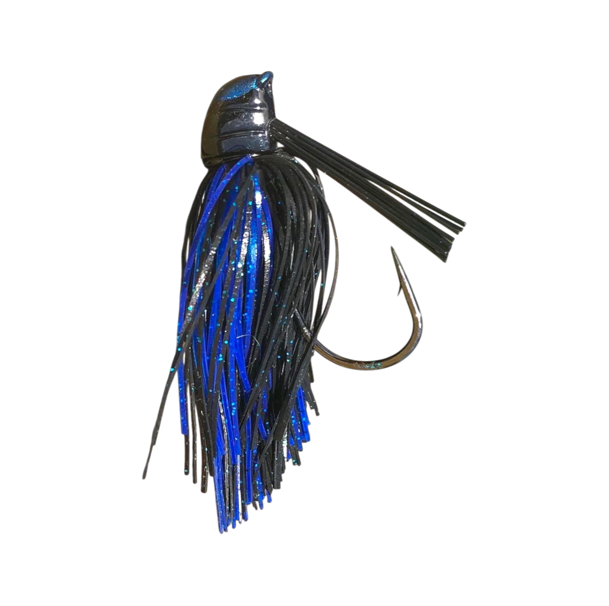 The grave digger has a flippin' style head with a slotted portion on the lower part that reduces snags.
